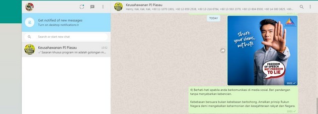 Slot Advokasi Bersama Pihak Usahawan Penduduk Kampung Piasau Utara Via Whatsapp – Kebebasan Bersuara Bukan Kebebasan Berbohong