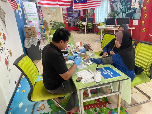 17 Julai 2025 | Aktiviti TerkiniPada 16/07/2025 bersamaan dengan hari Rabu, petugas mengambil kesempatan untuk membuat saringan kesihatan kepada komunti yang hadir ke pusat NADI Piasau. Tujuan utama saringan kesihatan ini dibuat agar kesemua komuniti yang hadir dapat menyemak tahap kesihatan masing-masing. Dengan alatan yang telah disediakan oleh NADI, ianya dapat membantu komuniti untuk melihat tahap Kesihatan mereka seperti menyemak tahap tekanan darah tinggi, kadar gula dalam badan serta ukuran BMI mereka. Petugas NADI juga turut memberi penerangan tentang pentingnya pencegahan penyakit dan cara-cara mengurangkan risiko penyakit melalui gaya hidup sihat, pemakanan seimbang, dan senaman.